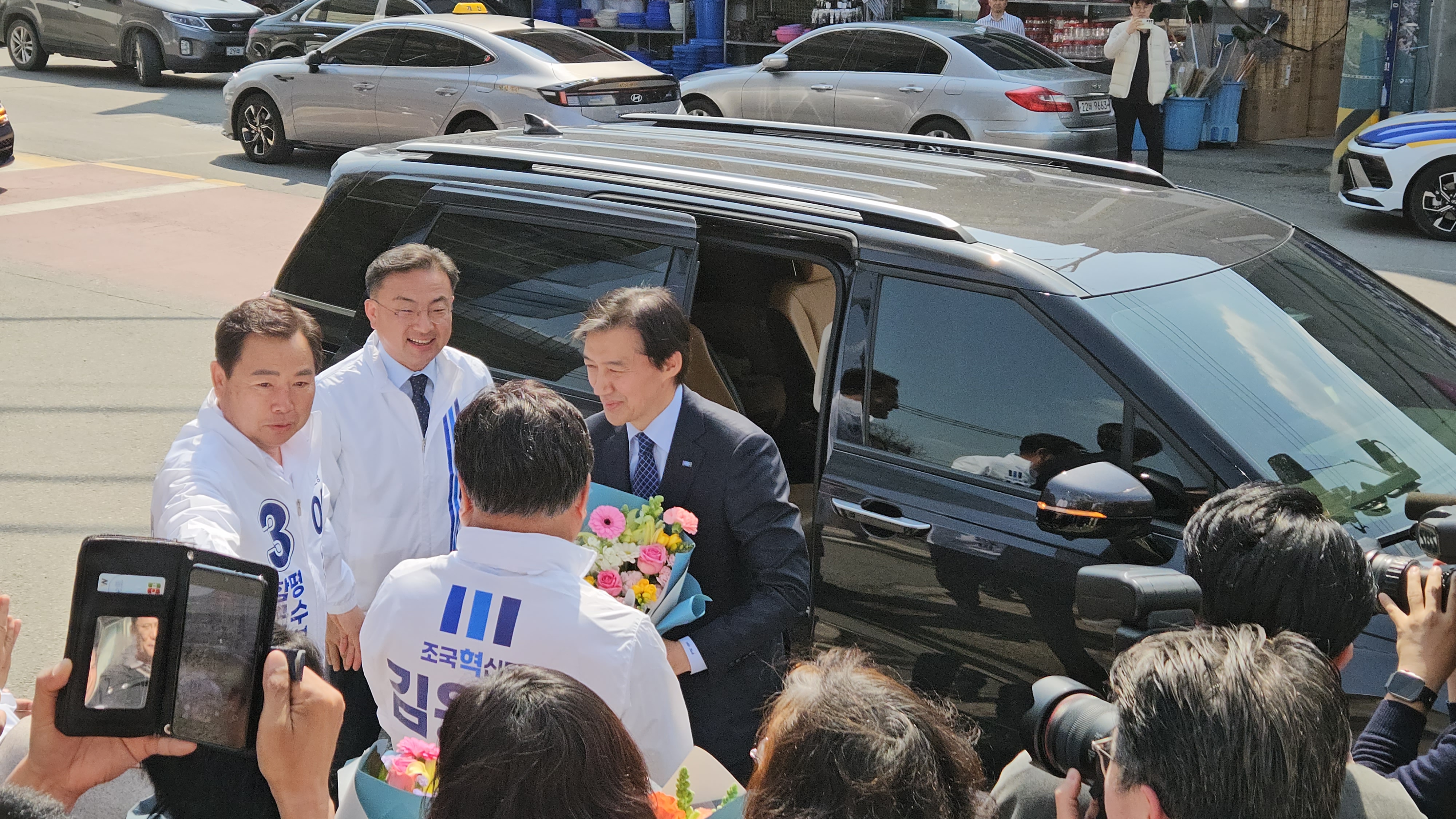 이날 조국 당대표가 함평읍 터미널 사거리에 도착하자 현장은 이미 그를 기다리던 군민들로 인산인해를 이뤘다. 조 대표를 보기 위해 상점 밖으로 달려 나온 상인들과 거리의 주민들은 환호성을 지르며 반겼고, 조 대표는 이들과 일일이 인사를 나누며 이윤행 예비후보의 선거사무소로 향했다.